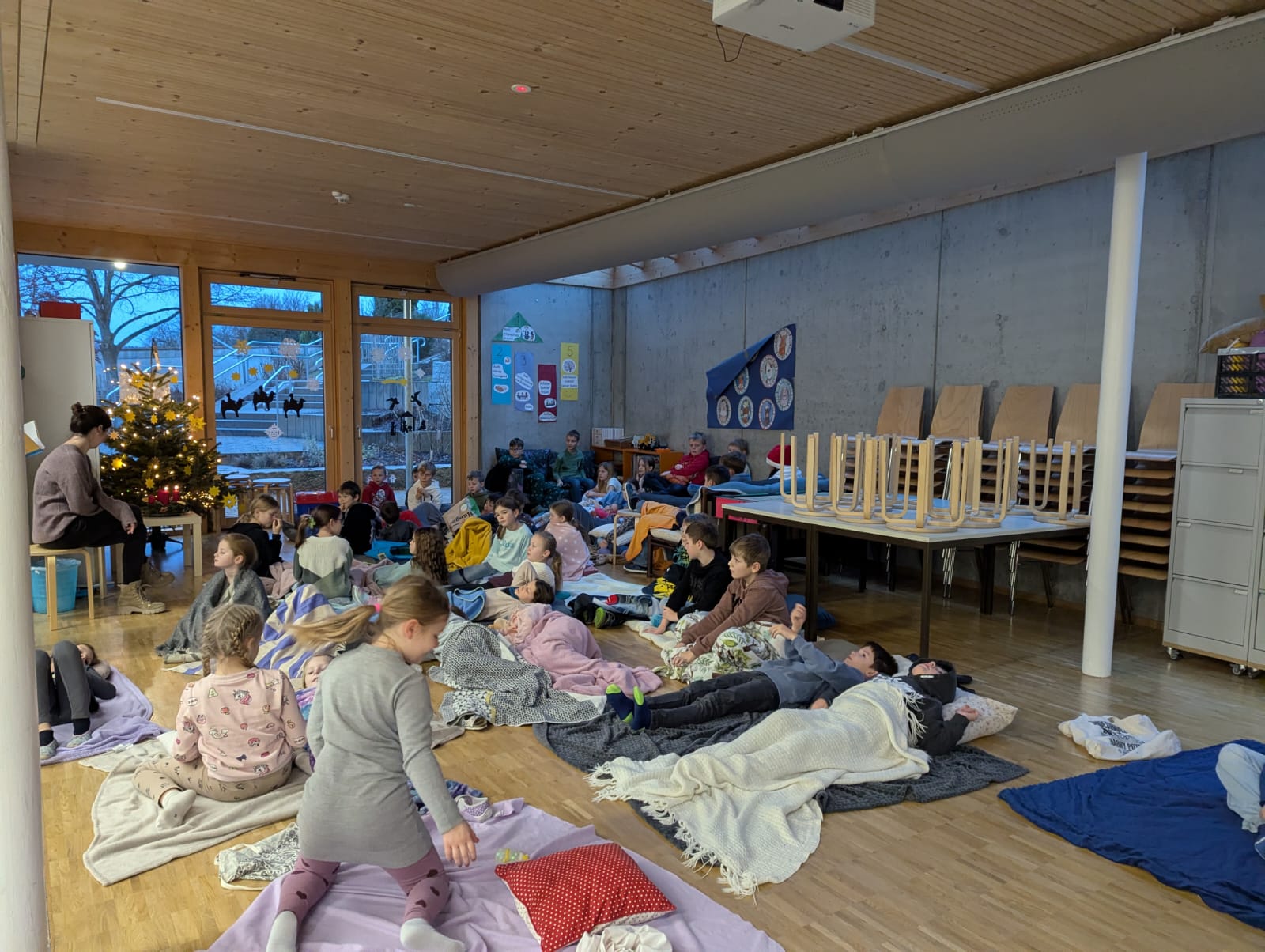 Jeden Montag treffen sich alle Schüler und Schülerinnen in der ersten Stunde um gemütlich zusammen einer Adventsgeschichte zu lauschen.